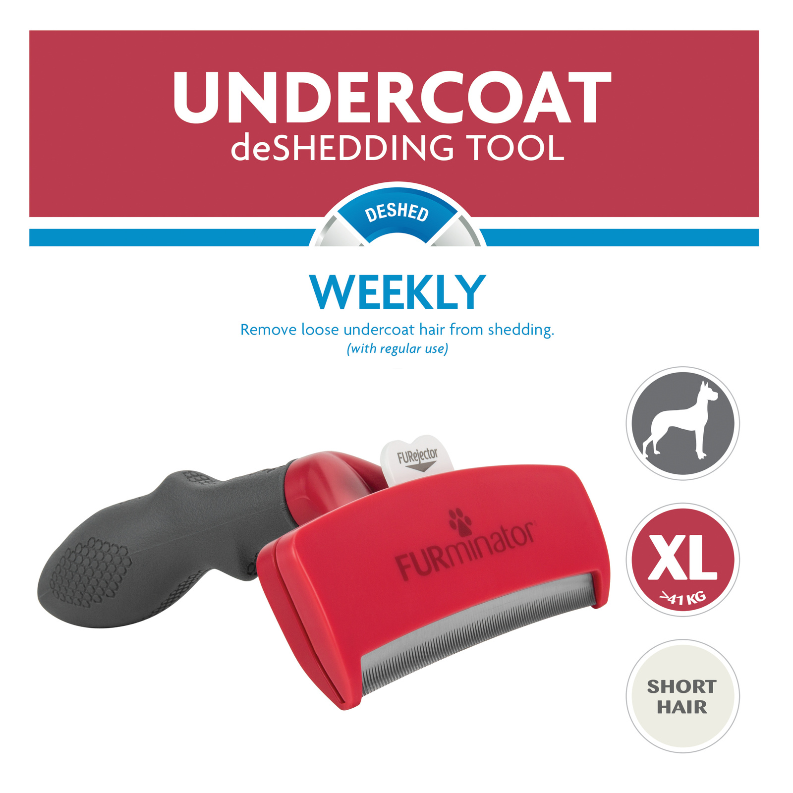Narzędzie FURminator® do usuwania podszerstka dla krótkowłosych psów olbrzymich ras (XL). Narzędzie zaprojektowane specjalnie dla psów o masie ciała powyżej 41 kg o sierści krótszej niż 5 cm. Produkt został zaprojektowany w celu promowania zdrowej skóry i sierści u zwierząt domowych oraz znacznego zmniejszenia ilości włosów, które każdego dnia zwierzę gubi i roznosi po domu. Pozwala skutecznie usuwać podszerstek i martwy włos, redukując linienie do 99%. Osłonięte krawędzie zapobiegają podrażnianiu skóry i chronią urządzenie podczas jego przechowywania dzięki technologii Edge Guard. Łatwy w obsłudze. Intuicyjne czyszczenie.