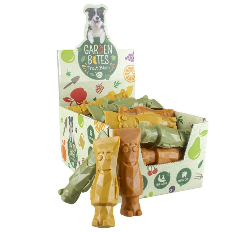 Garden Bites od Duvo + są idealną nagrodą lub przekąską dla twojego psa. Kąski ogrodowe zawierają nie mniej niż 55% słodkich ziemniaków. Słodki ziemniak to cenny dodatek w diecie twojego psa. Jest bogaty w witaminy, wapń, żelazo i więcej. Specjalny kształt pomaga masować dziąsła i czyścić zęby podczas zabawy. Naturalny ekstrakt mięty zapewnia świeży oddech. Przekąski są w 100% bezglutenowe, co czyni je lekkostrawnymi i doskonale nadają się dla psów z alergią. Smak sprawia, że tym przekąskom nie sposób się oprzeć!