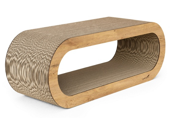 - Wykonany z naturalnej, wytrzymałej tektury falistej, drewnianego lica lub płyty HDF.