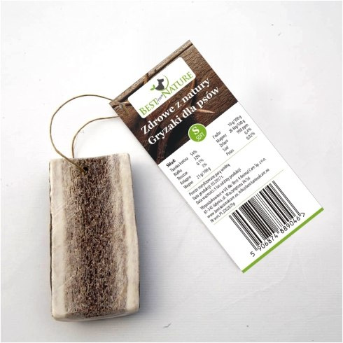 - W 100% naturalny i zdrowy gryzak dla psów. Przygotowywany jest ręcznie z poroży jeleni - tzw. zrzutów czyli poroży jeleni gubionych w polskich lasach wiosną przez dziko żyjące jelenie. Rozmiar S soft (przecięty wzdłuż) ma długość 9 cm i wagę 20-50 g