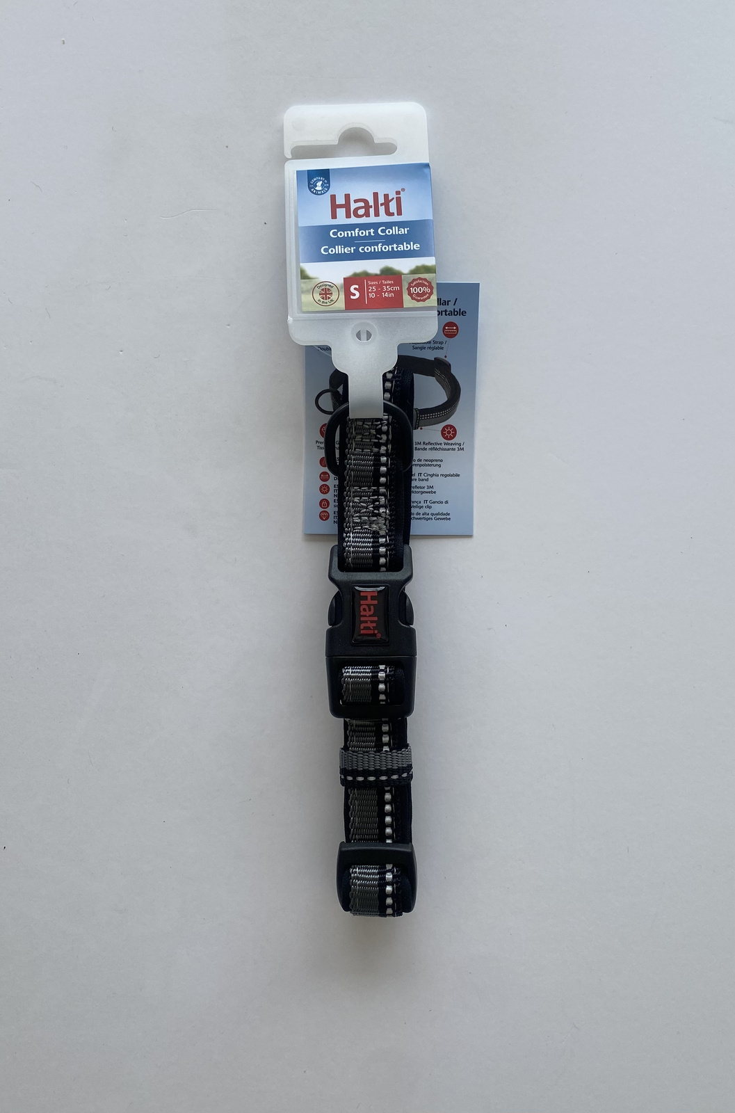 Halti obroża comfort SObroża Halti comfort to prosta, praktyczna i wygodna obroża dla psa, ktrą można łatwo dopasować i ktra idealnie nadaje się do noszenia na co dzień.Mocnai bezpiecznaDzięki solidnej 3-punktowej klamrze i mocnemu kłku do mocowania smyczy lub identyfikatora zpewnością zapewni Twojemu futrzanemu przyjacielowi bezpieczeństwo.Podszyta neoprenemObroża podszyta jest miękkim neoprenem, ktryzapewnia Twojemu psu wygodę i radość na każdym spacerze. Dzięki temu nie powoduje otarć i jest odpowiednia dla delikatnych psw.W pełni regulowanaObrożaHalti comfortjest w pełni regulowana, zapewniając naprawdę odpowiednie dopasowanie. Możesz wybierać spośrd rżnych rozmiarw i szerokościdla małych i dużych psw.OdblaskowaTa wygodna obroża dla psa, idealna na spacery wczesnym rankiem lub pźnym wieczorem, ma odblaskowe szwy 3M™ Scotchlite, ktre zapewniają dobrą widoczność w warunkach słabego oświetleniaRozmiary:RozmiarObwdSzerokośćPrzykładowe rasyXS20-30cm1,2cmMini Jamnik, Papilon, Toy PudelS25-35cm1,5cmBichon Frise, Border Terrier, Jack Russell, MaltańczykM30-60cm2cmCorgi, Saluki, Shiba Inu, Pudel Standard, WhippetL45-70cm2,5cmBozer, Dalmatyńczyk, Owczarek Niemiecki, Bulmastif