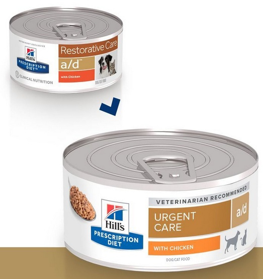 Prescription Diet a/d ma gładką, miękką, wilgotną i tiksotropową konsystencję (mieszanie sprawia, że robi się bardziej płynna), zapewniając maksymalną elastyczność w żywieniu - ręką, z miski, łyżką, strzykawką lub przez rurkę. Sprawdzone rozwiązanie do rekonwalescencji najsłabszych pacjentów i kluczowy element Twojego arsenału do leczenia pacjentów podczas rekonwalescencji.