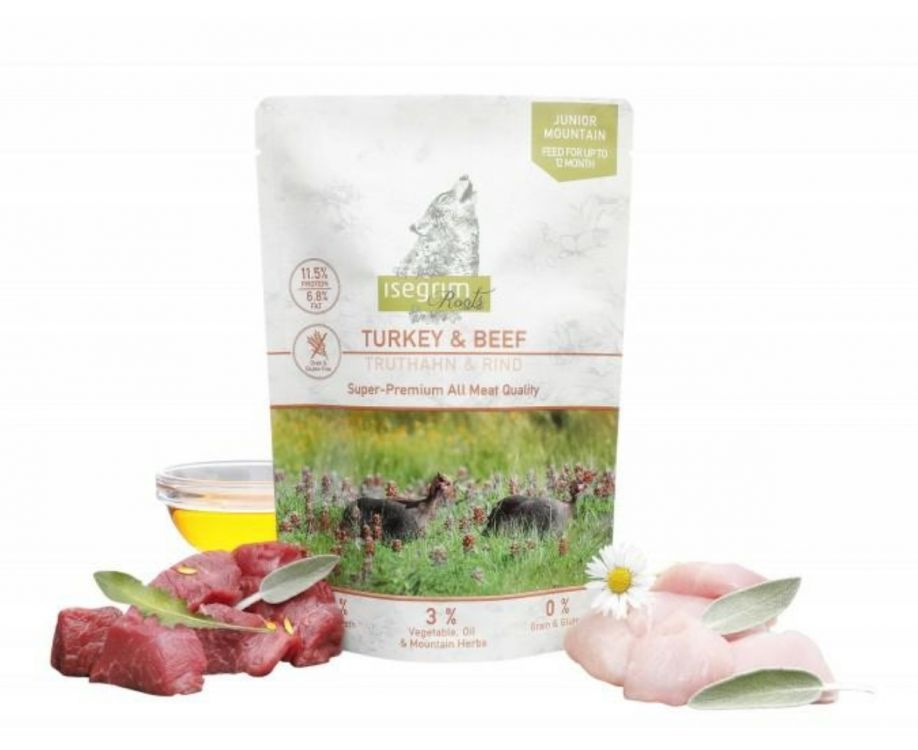 Isegrim Roots JUNIOR TURKEY & BEEF 410g Indyk i wołowina bez zbóż grain free saszetka dla szczeniaka