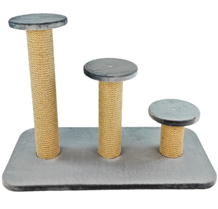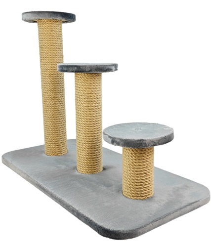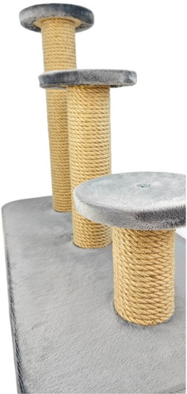 Słupki o wysokościach 53 cm, 35 cm i 17 cm owinięte są grubą, odporną na kocie pazurki liną, która przyklejona jest na całej ich długości.