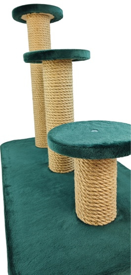 Słupki o wysokościach 53 cm, 35 cm i 17 cm owinięte są grubą, odporną na kocie pazurki liną, która przyklejona jest na całej ich długości.