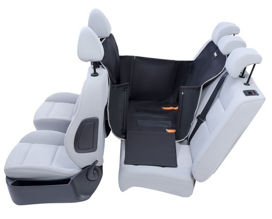 Mata zajmuje tylko połowę kanapy i może być montowana w dowolnym miejscu tj. za kierowcą, za pasażerem i na środku kanapy.
