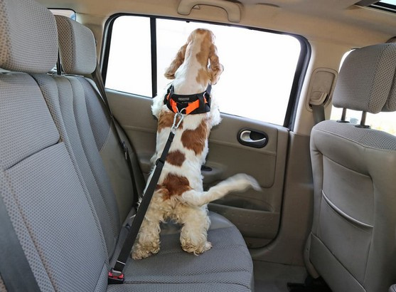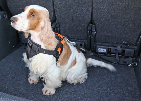 Przypięty pies gwarantuje bezpieczeństwo podczas jazdy.