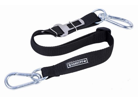 • Smycz wyposażona jest w specjalną stalową klamrę umożliwiającą szybkie wpięcie psa do standardowego uchwytu pasa bezpieczeństwa oraz stalowy karabińczyk umożliwiający zapięcie psa do systemu Isofix lub do uchwytów w bagażniku.