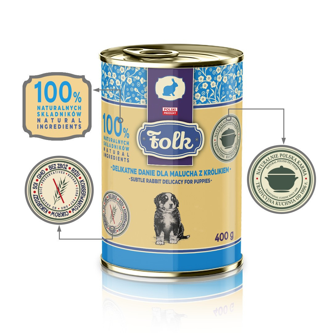 FOLK DELIKATNE DANIE DLA MALUCHA Z KRÓLIKIEM 400 g, karma mokra dla szczeniąt