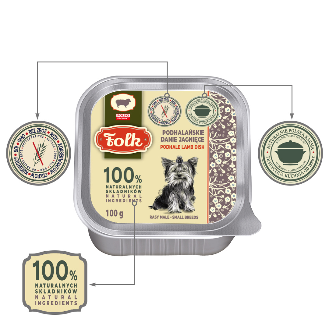 FOLK PODHALAŃSKIE DANIE JAGNIĘCE 100 g, KARMA MOKRA DLA PSA
