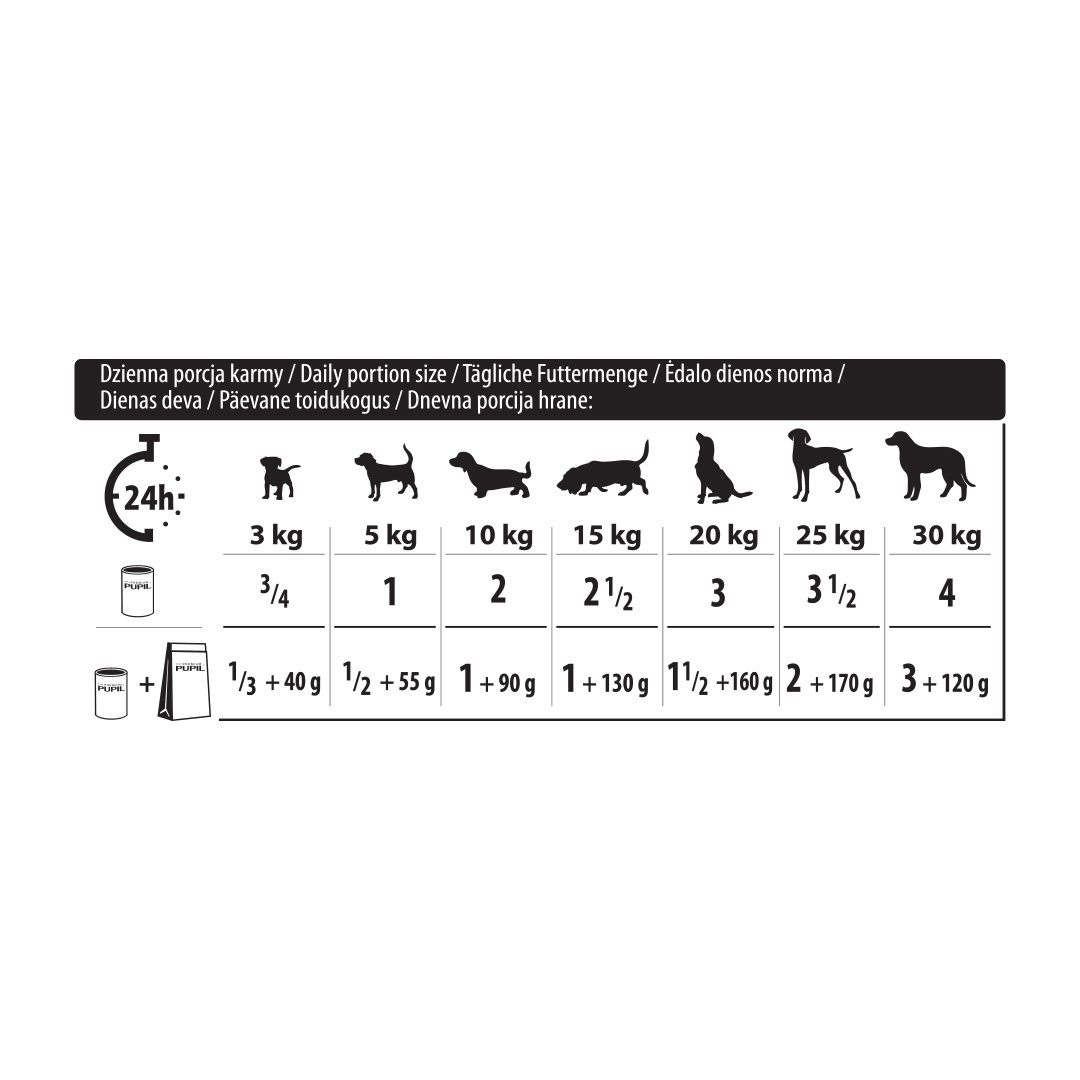 PUPIL PREMIUM MIX SMAKÓW DLA PSA 10 X 415 G - PEŁNOPORCJOWA MOKRA KARMA DLA PSA DOROSŁEGO W GALARETCE. DLA PSA DOROSŁEGO OD 1 ROKU ŻYCIA.