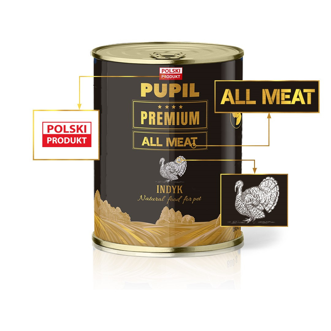 PUPIL PREMIUM ALL MEAT GOLD INDYK 800g, karma mokra dla