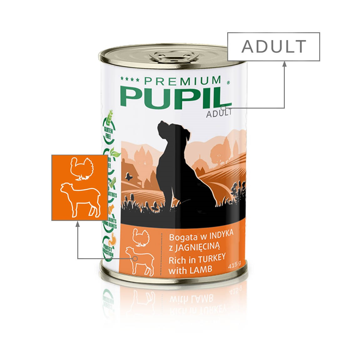 Karma mokra dla psa PUPIL Premium bogata w indyka z jagnięciną 415 g