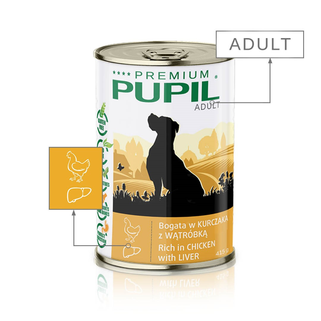Karma mokra dla psa PUPIL Premium bogata w kurczaka z wątróbką 415 g