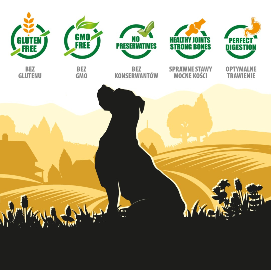Karma nie zawiera konserwantów, sztucznych barwników i dodatków, a wszystkie użyte surowce są w 100% naturalne.