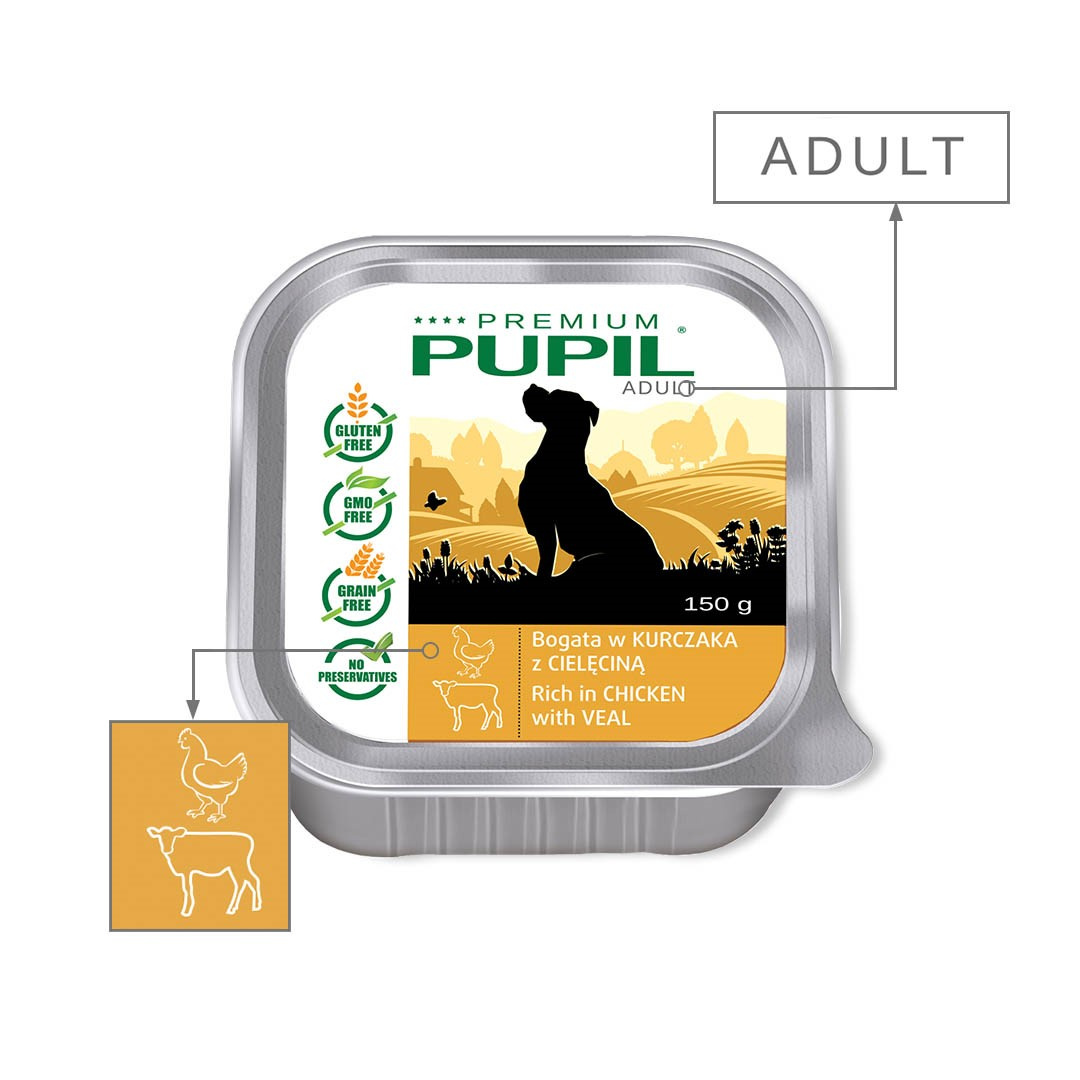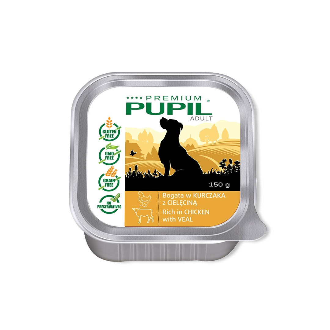 PUPIL PREMIUM szalka bogata w kurczaka z cielęciną 150 g – KARMA MOKRA DLA PSA