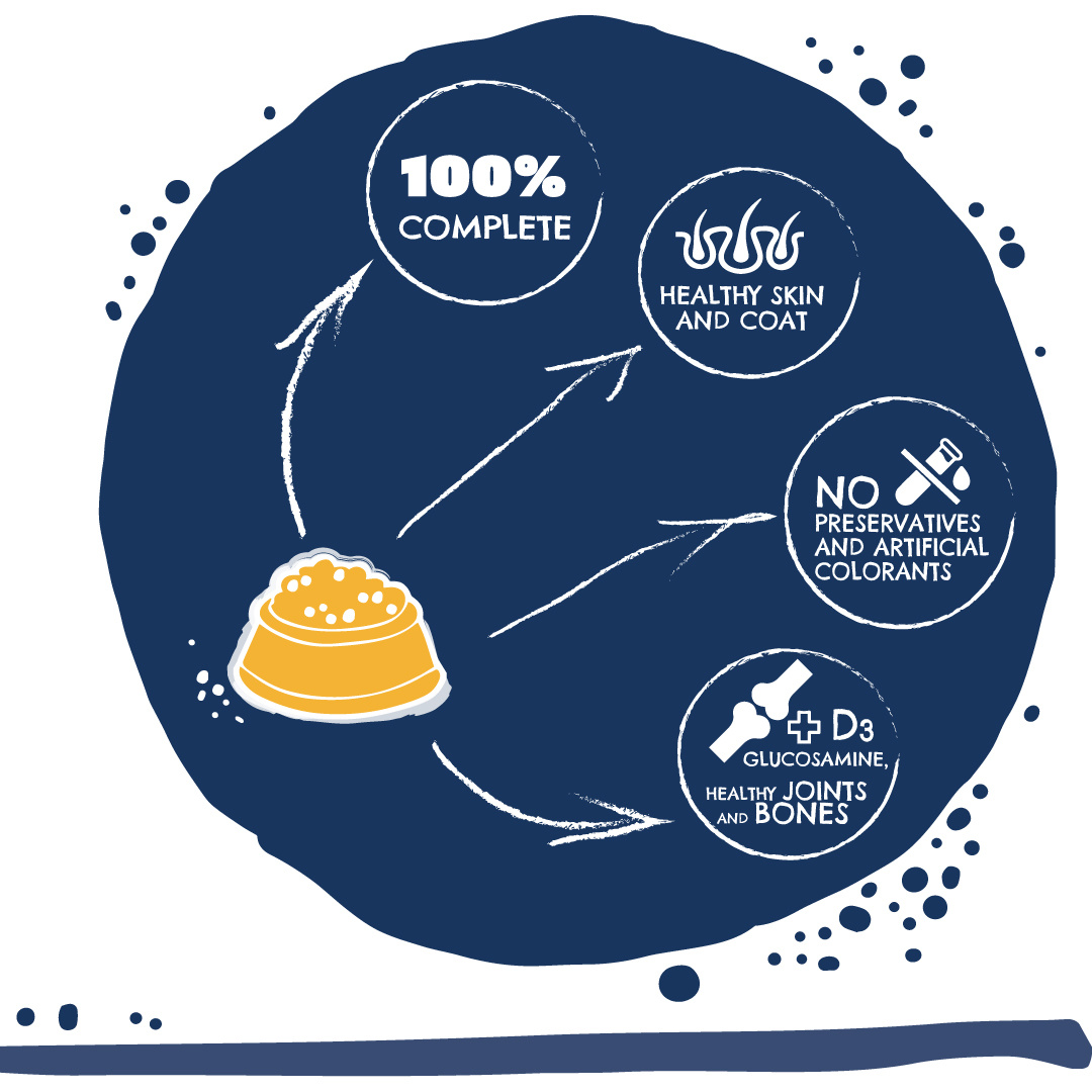 Karma jest skomponowana z naturalnych surowców, nie zawiera sztucznych dodatków, barwników ani konserwantów.