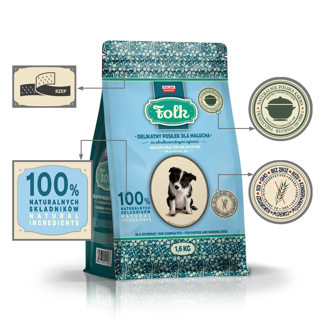 Karma sucha dla psa FOLK Junior Delikatny posiłek dla malucha ze słodkowodnymi rybami 1,6 kg