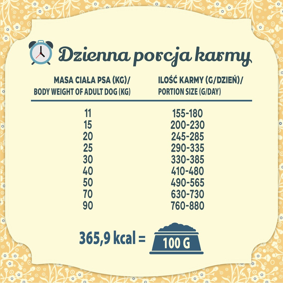 - Pełnoporcjowe danie dla dorosłych psów ras średnich i dużych