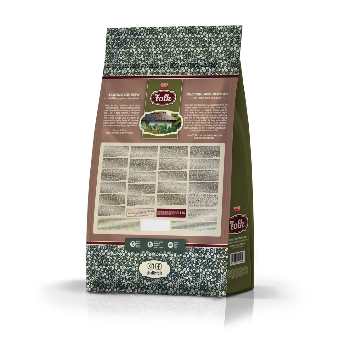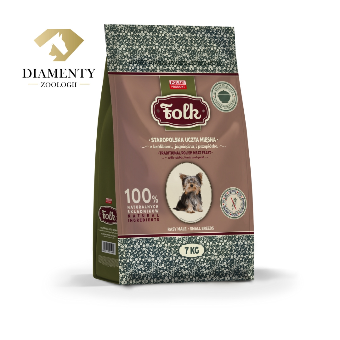 FOLK STAROPOLSKA UCZTA MIĘSNA Z KRÓLIKIEM, JAGNIĘCINĄ I PRZEPIÓRKĄ 7 KG – KARMA SUCHA DLA PSA RASY MAŁEJ I MINIATUROWEJ