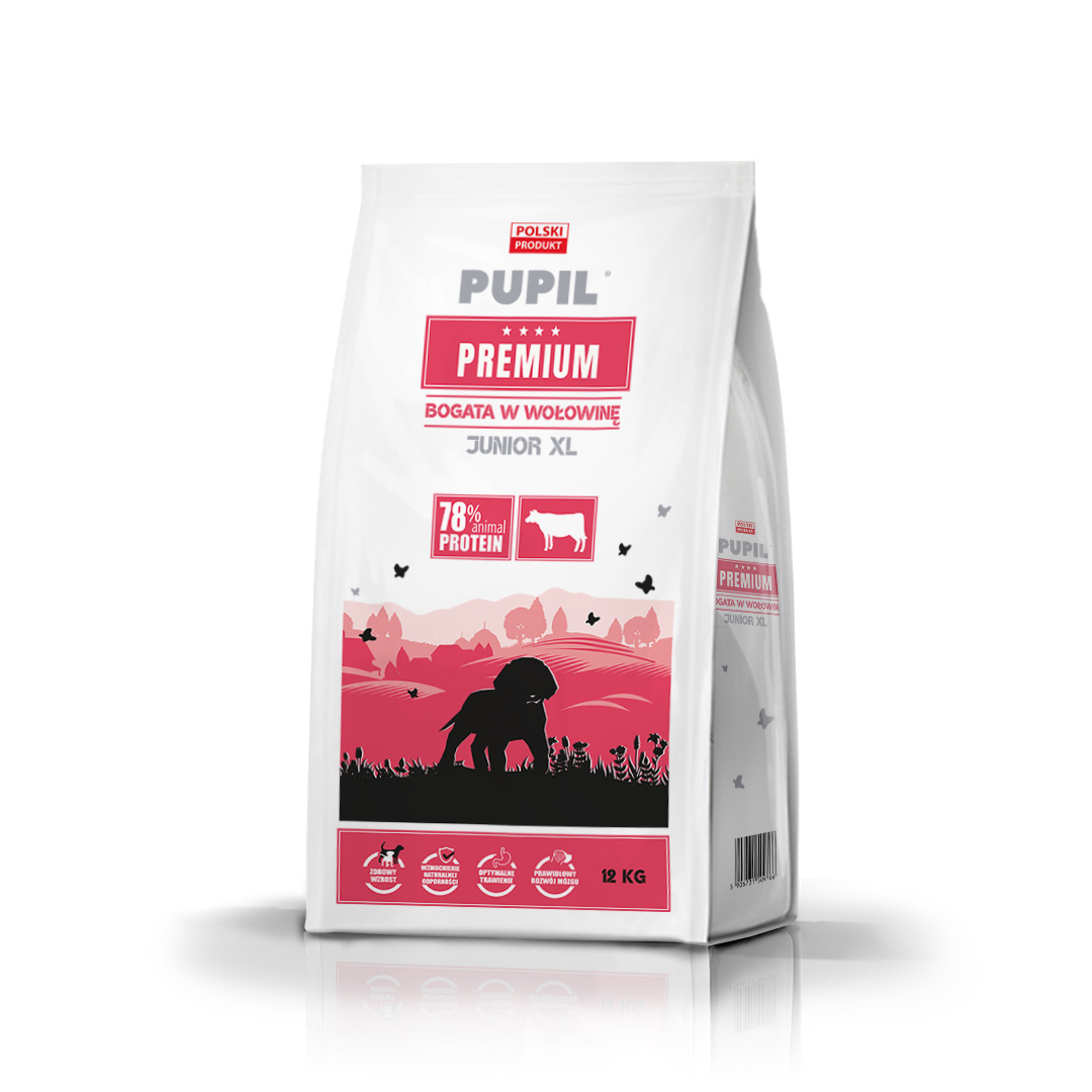 PUPIL PREMIUM JUNIOR EXTRA LARGE bogata w wołowinę 12 kg – KARMA SUCHA DLA PSA