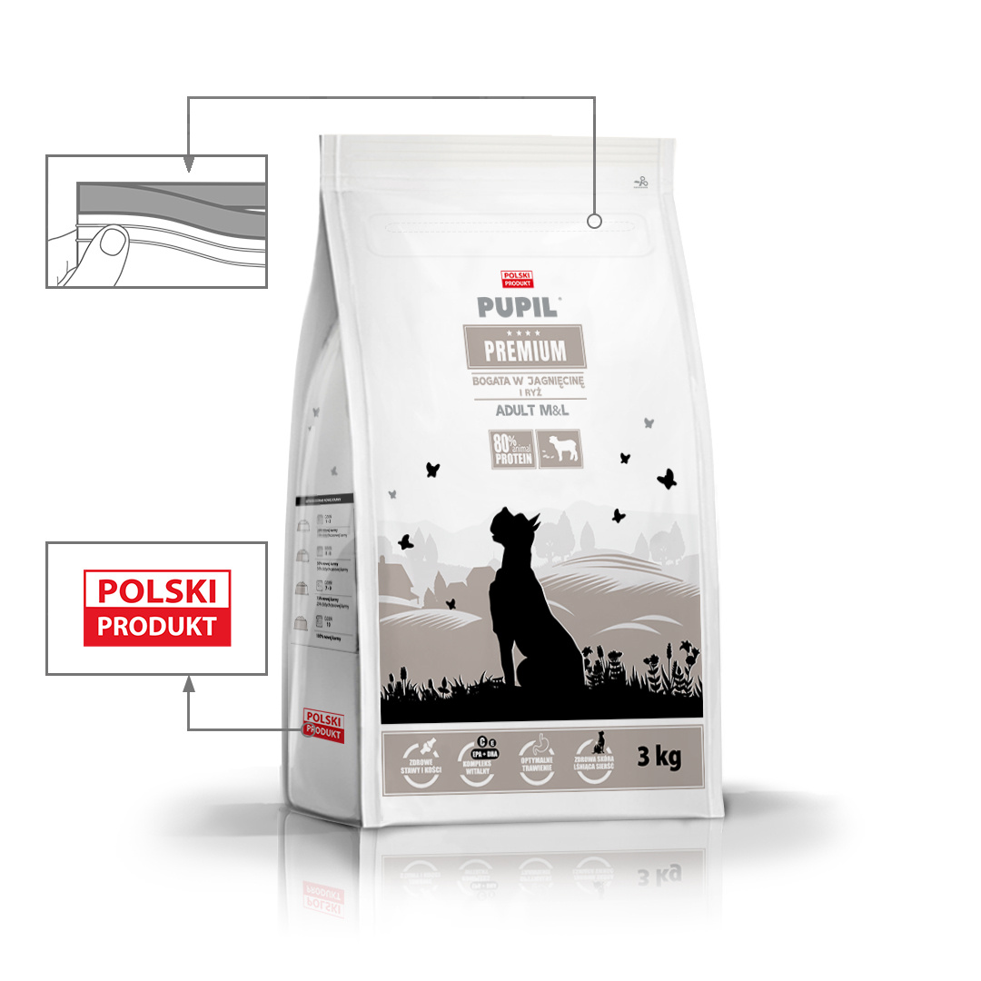 PUPIL PREMIUM ADULT MEDIUM & LARGE bogata w jagnięcinę i ryż 3 kg – KARMA SUCHA DLA PSA