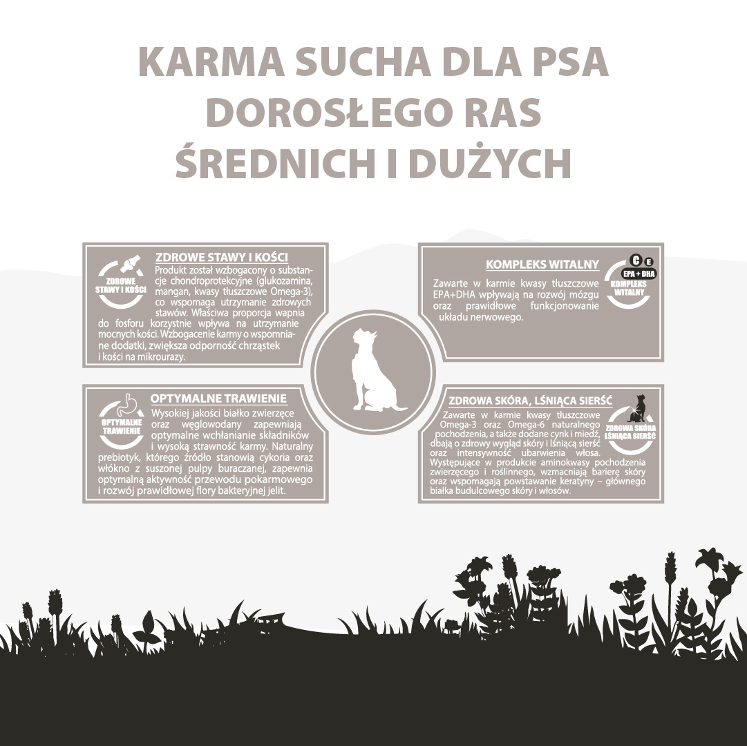 - Pełnoporcjowy posiłek dla dorosłych psów ras średnich i dużych