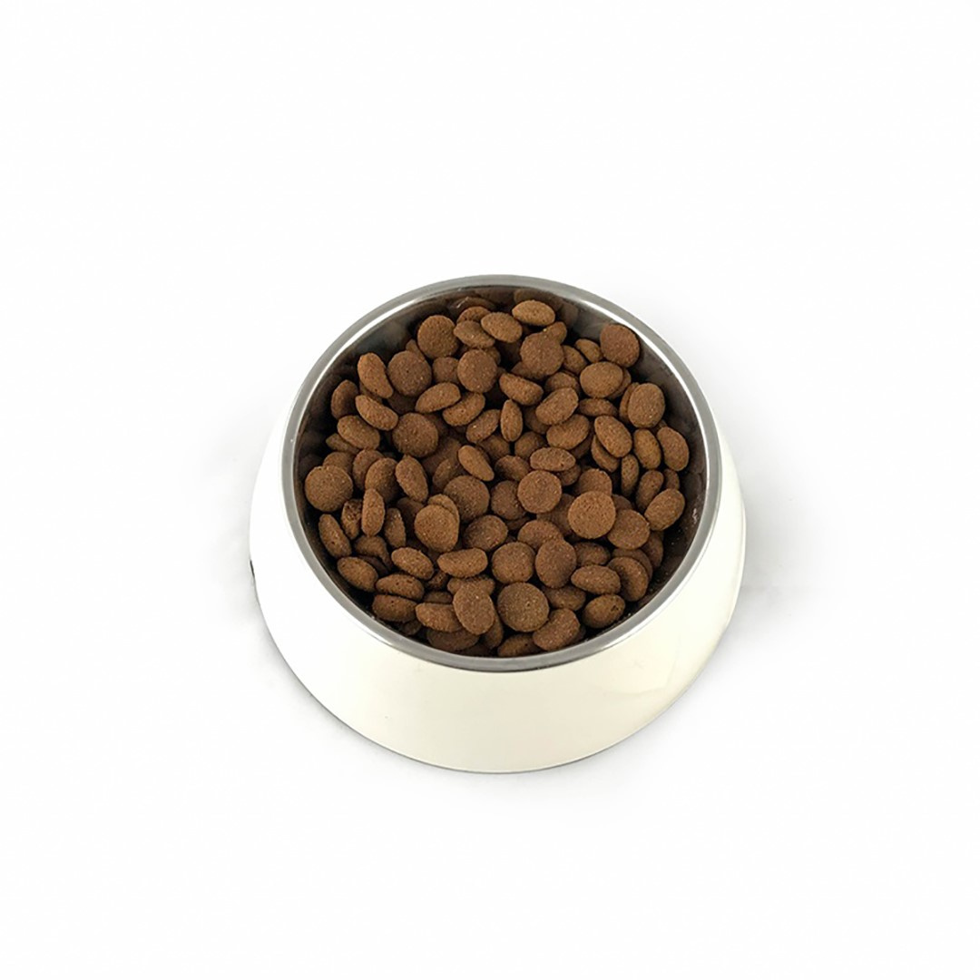 Karma nie zawiera konserwantów, sztucznych dodatków ani barwników. Wszystkie składniki są naturalne. Wielkość granuli jest dostosowana do szczęk psów ras średnich i dużych.