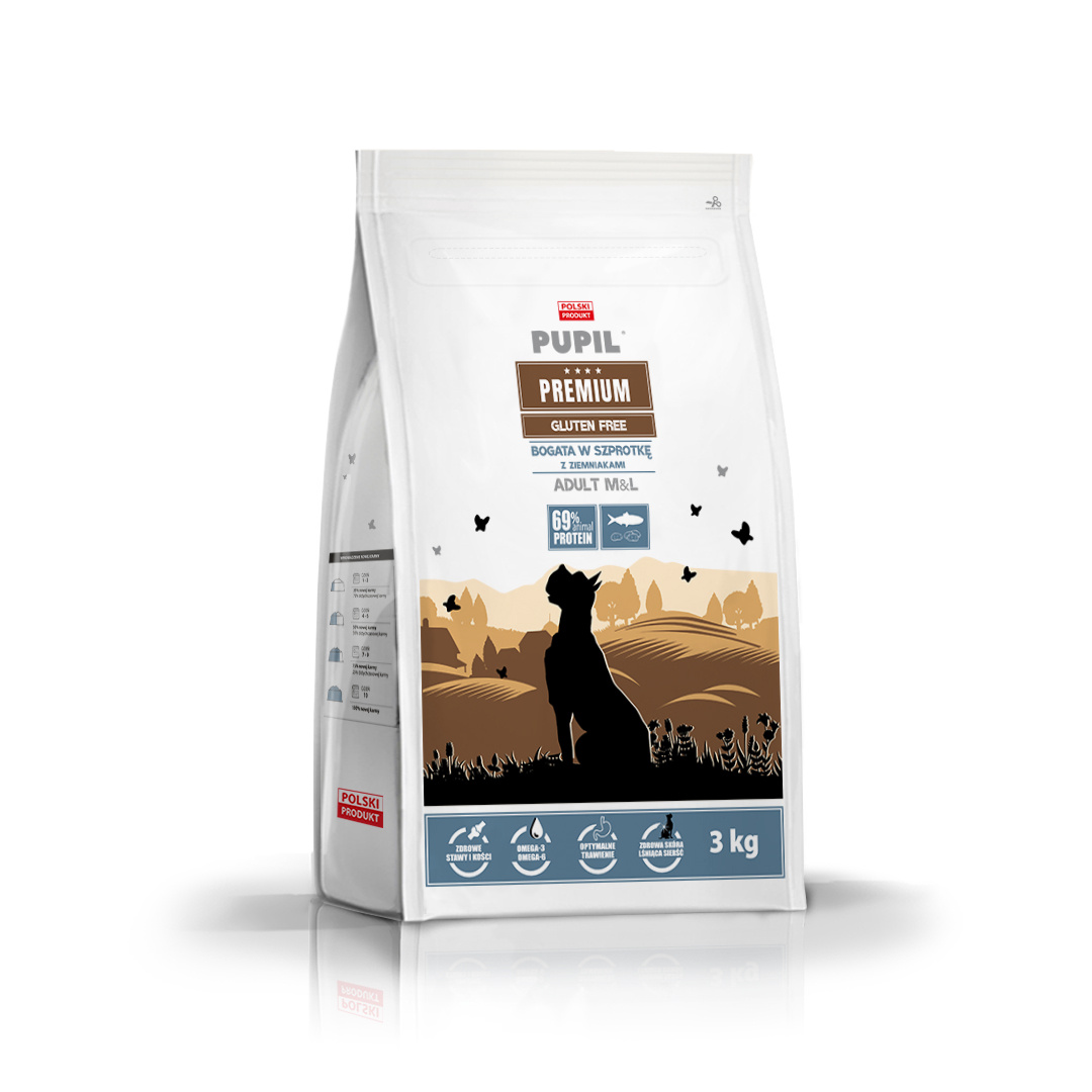 PUPIL PREMIUM M&L BOGATA W SZPROTKĘ Z ZIEMNIAKAMI 3 kg – KARMA SUCHA DLA PSA