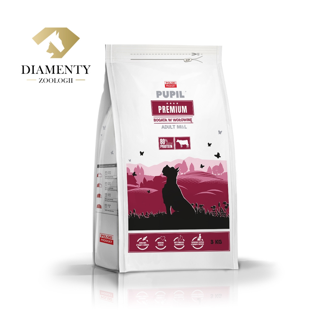 PUPIL PREMIUM ADULT MEDIUM & LARGE bogata w wołowinę 3 kg – KARMA SUCHA DLA PSA