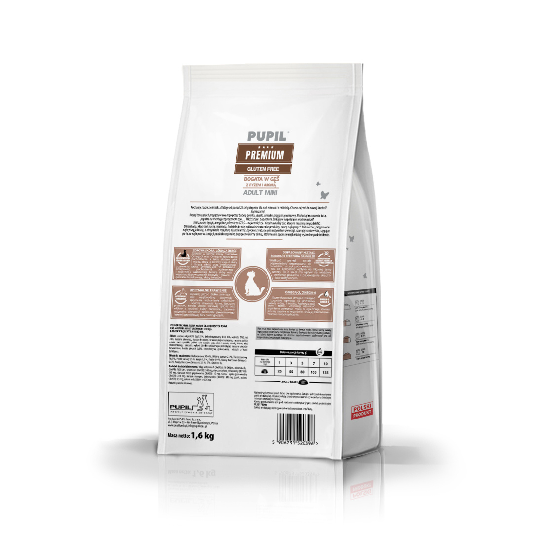 PUPIL PREMIUM MINI BOGATA W GĘŚ Z RYŻEM I ARONIĄ 1,6 kg – KARMA SUCHA DLA PSA