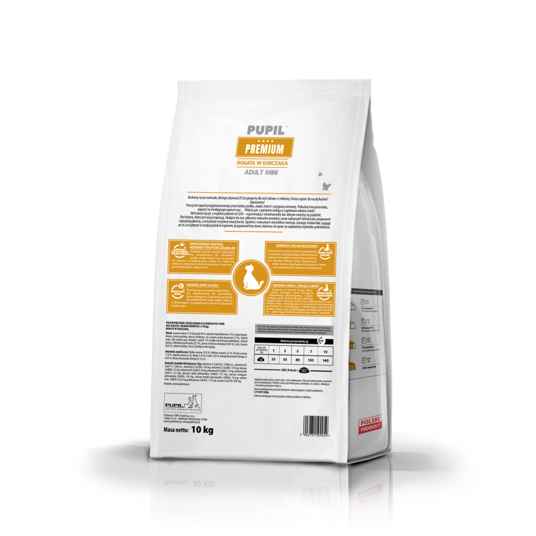 PUPIL PREMIUM MINI BOGATA W KURCZAKA 10 kg – KARMA SUCHA DLA PSA