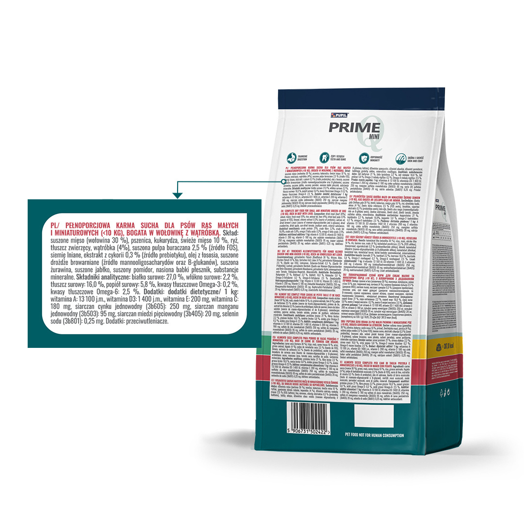 PUPIL PRIME karma sucha dla dorosłych psów ras małych i miniaturowych (<10 kg), bogata w wołowinę z wątróbką 1,4 kg