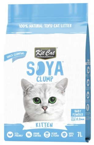 - Kit Cat SoyaClump Baby Powder to w 100% naturalny, ekologiczny, biodegradowalny żwirek sojowy dla kota. Ten wyjątkowy produkt jest wytwarzany z nierozpuszczalnych części soi, które znajdują się w...