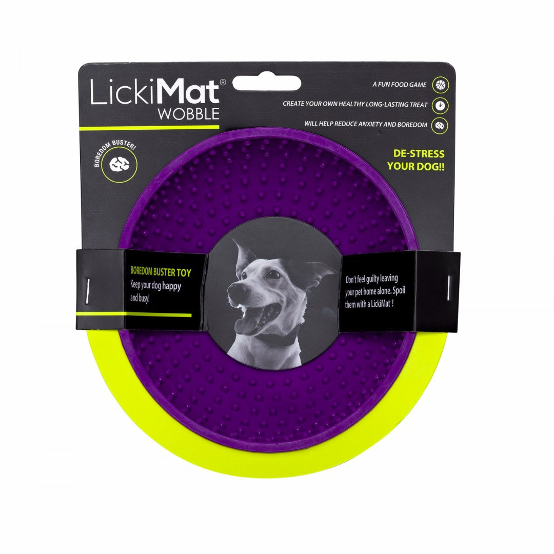 - LickiMat® WOBBLE to niezwykle atrakcyjna i ciekawa odmiana LickiMat® chybocząca się podczas lizania. Ma kształt zbliżony do miski. WOOBLE chybocze, ucieka, więc pies ma więcej zabawy, która może trwać nawet 3 razy dłużej niż ze standardową LickiMat®. To