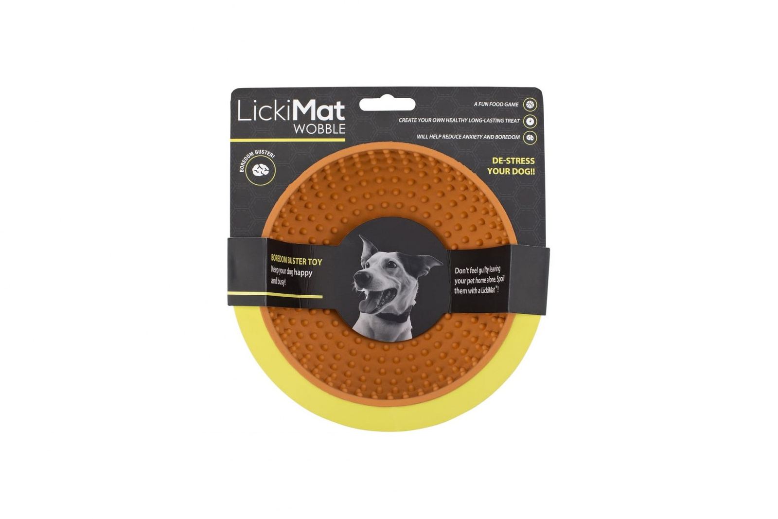 - LickiMat® WOBBLE to niezwykle atrakcyjna i ciekawa odmiana LickiMat® chybocząca się podczas lizania. Ma kształt zbliżony do miski. WOOBLE chybocze, ucieka, więc pies ma więcej zabawy, która może trwać nawet 3 razy dłużej niż ze standardową LickiMat®. To