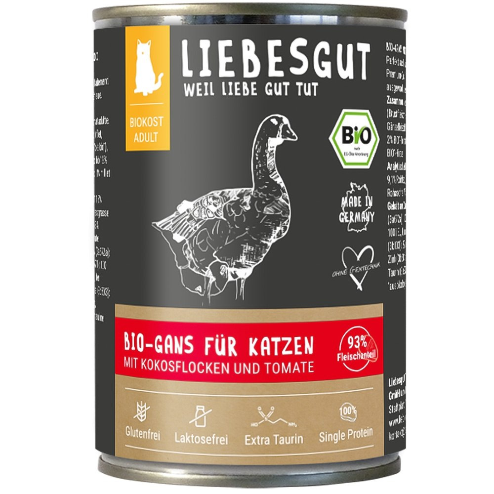 LIEBESGUT BIO GANS - gęś z płatkami kokosowym i pomidorami ekologiczna mokra karma dla kota 400g