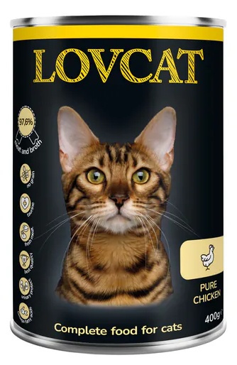 - LOVCAT Pure CHICKEN Pełnoporcjowa, wysokomięsna karma dla kotów, idealnie zbilansowana dla wsparcia zdrowego rozwoju Twojego kota. Receptura oparta na świeżym mięsie najwyższej jakości. Kompozycja...