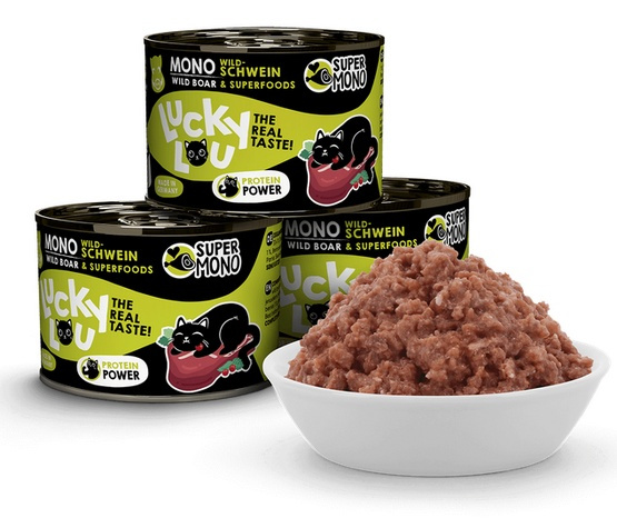 - Lucky Lou SuperMono Dzik Lucky Lou Supermono jest karmą pełnoporcjową dla kotów. Nie zawiera zbóż ani cukru. Mokre, wysokiej jakości jednobiałkowe jedzenie, które przypadnie do gustu kocim...