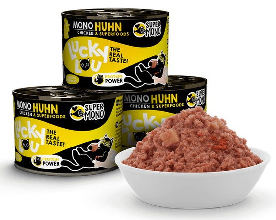 Lucky Lou Supermono jest karmą pełnoporcjową dla kotów. Nie zawiera zbóż ani cukru. Mokre, wysokiej jakości jednobiałkowe jedzenie, które przypadnie do gustu kocim smakoszom, również wrażliwym.