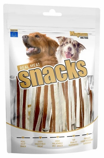 - Magnum Duck sandwich Uzupełniająca karma dla psów - miękki i smaczny przysmak do podawania jako nagroda. Skład: mięso kaczki, skrobia, sorbitol, gliceryna Analiza: białko 30% tłuszcz 1% włókno 2%...