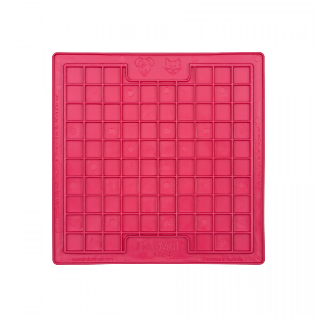 - Mata LickiMat® PLAYDATE posiada kwadratowe, dość duże kieszenie, dlatego jest idealna do serwowania większych kawałków jedzenia jak mielone mięso czy ryby, karma mokra o bardziej zwartej konsystencji .