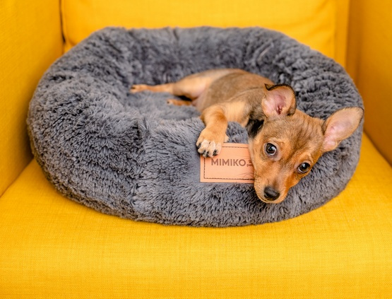 MIMIKO Pets Legowisko Shaggy okrągłe M 45cm grafitowe
