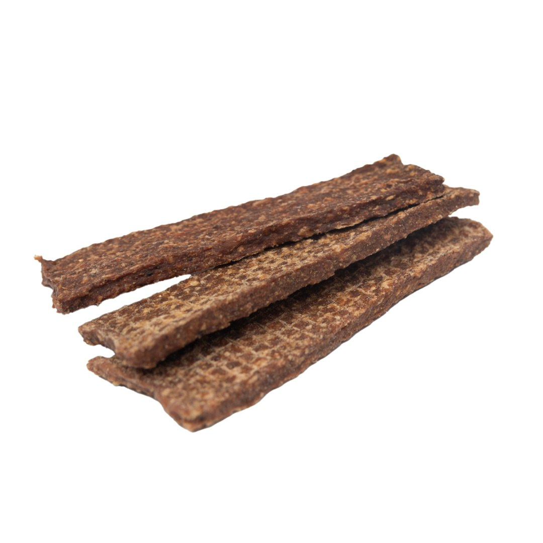 Przysmaki w kształcie delikatnie miękkich pasków z mięsa gęsiny to wyjątkowo atrakcyjna i smaczna przekąska dla każdego psa. Mięso gęsiny bogate jest w kwasy tłuszczowe Omega-3 i Omega-6. Zawiera wszystkie niezbędne aminokwasy egzogenne. Bogate jest także w witaminy: A, E oraz witaminy z gr B. Przysmaki wyprodukowane z najwyższej jakości mięsa i delikatnie suszone powietrzem. Te delikatnie suszone przysmaki dla psa są wyjątkowo atrakcyjnym smakołykiem. Dzięki delikatnemu procesowi suszenia powstają miękkie przysmaki dla psa, które są zdecydowanie chętniej wybierane szczególnie przez psy małych ras i są idealne dla szczeniąt.