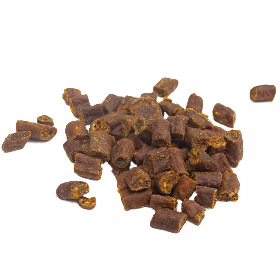 Przysmaki  treningowe wyprodukowane w 100% z mięsa jelenia. Zdrowa, naturalna i smaczna przekąska  dla Twojego psa. Szczególnie polecane psim alergikom, ponieważ  mięso jelenia bardzo rzadko wywołuje reakcje alergiczne.