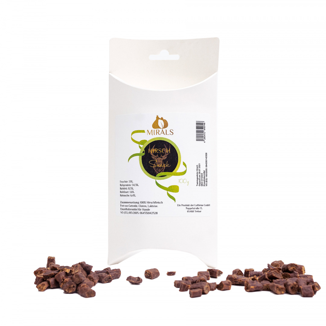 MIRALS Hirsch Snack - przysmaki treningowe z mięsa jelenia (100g)