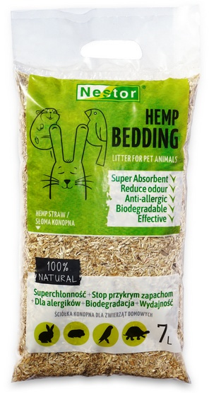 • Nestor Ściółka konopna dla zwierząt domowych Ściółka ze słomy konopnej jest superchłonna, bardzo wydajna i odpowiednia dla alergików, rzadko powoduje uczulenia. Luźna struktura zapewnia stałą...