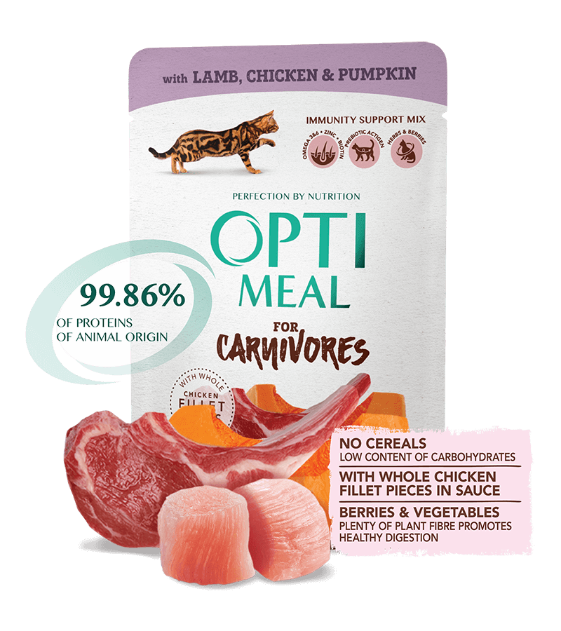 OPTIMEAL KOT sasz.85g CARNIVORES JAGNIĘ, KURA, DYNIA w galaretce