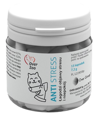 - Over Zoo Anti Stress Naturalny preparat łagodzący objawy stresu i niepokoju u psów i kotów. Dzięki zawartości ekstraktu z korzenia waleriany, L-tryptofanu, kwasu GABA, witamin z grupy B, preparat...