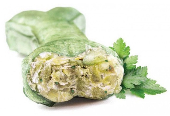 92% skóra wołowa, 2,5% żwacz wołowy, 2,5% penis wołowy, 1% minerały (fosforan dwuwapniowy, węglan wapniowo-magnezowy, węglan wapnia z muszli ostryg, tlenek magnezu), pietruszka, chlorofil, lizozym